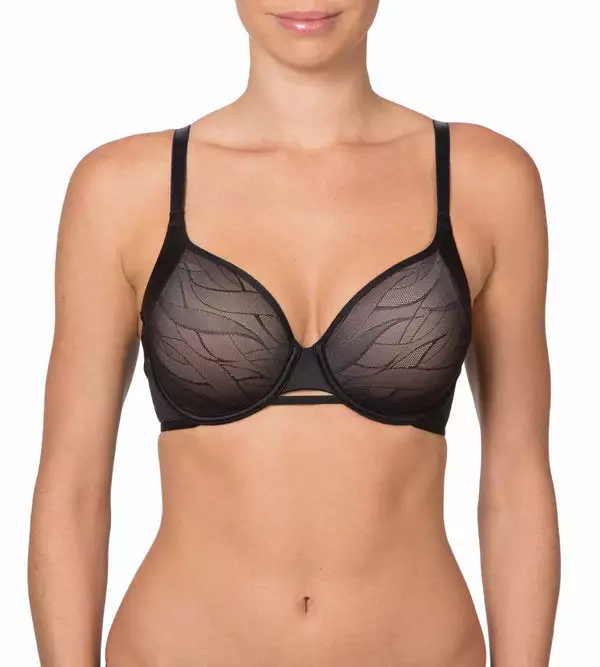 A t shirt bra with innovative spacer cup technology for super light and breathable padding. Features a rounded shape, and sateen trims on the side for a smoothing effect.