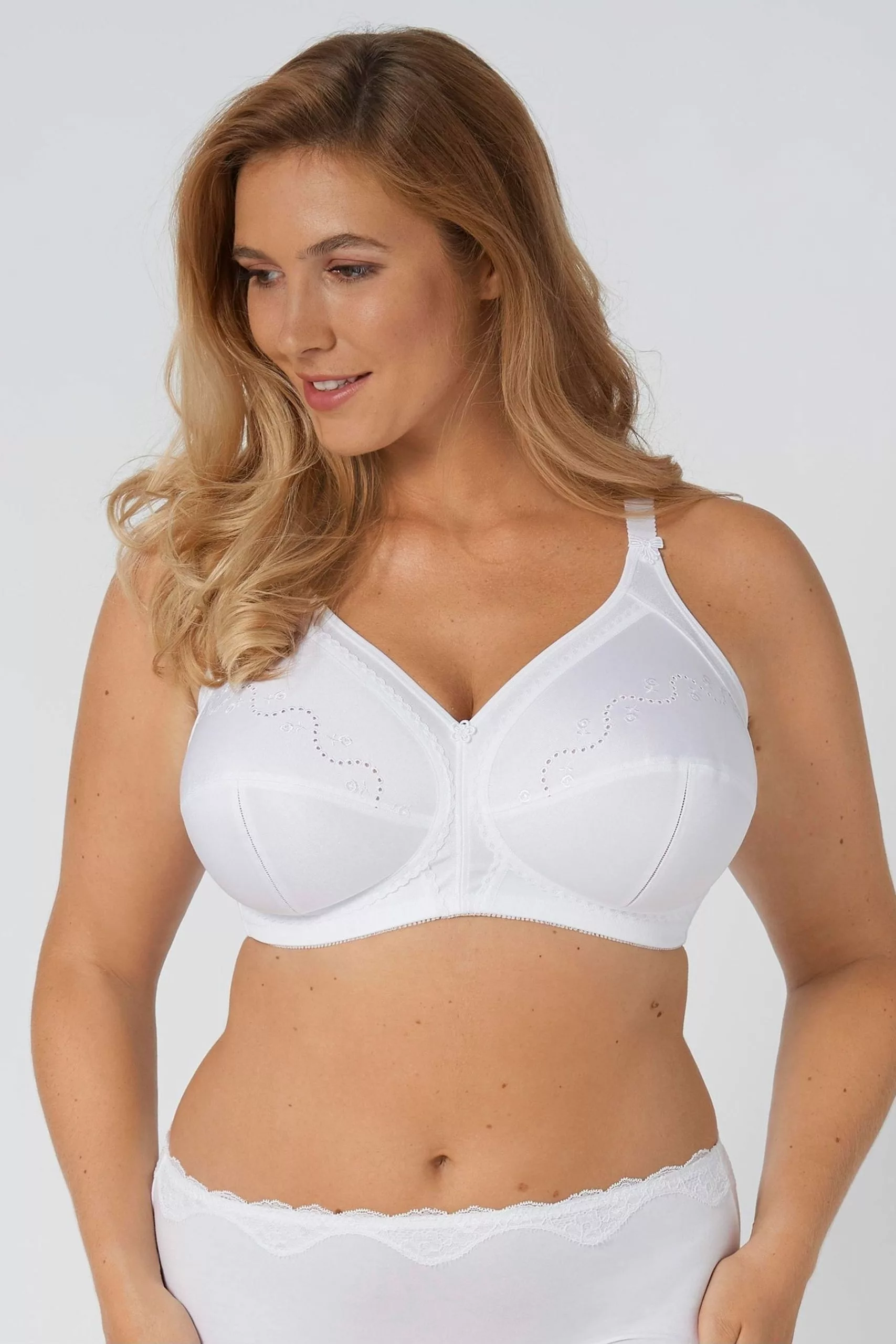 Doreen + Cotton is the ultimate bra, with soft shaping qualities, which turned this bra world wide into a bestseller. Unpadded cups with fine eyelet embroidery. Softly padded hook-eye closure for optimum support, three-times adjustable.