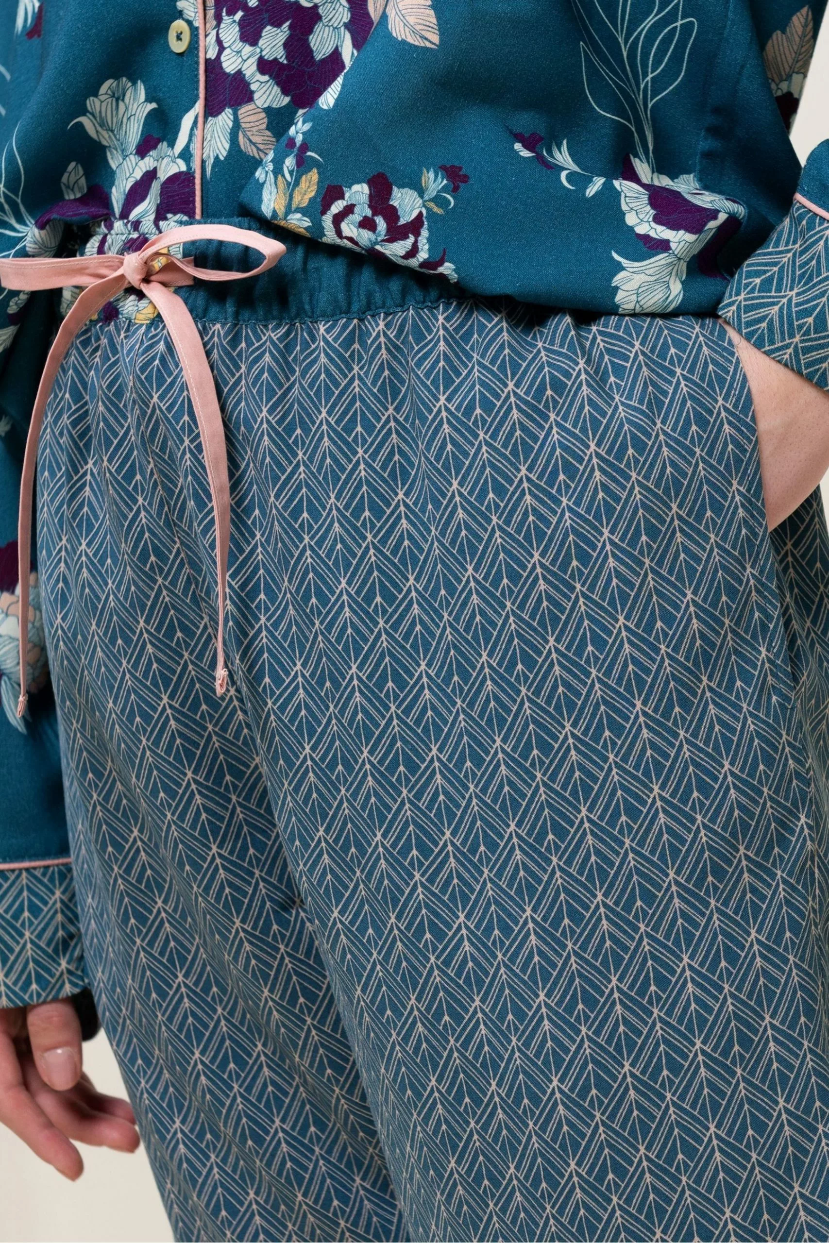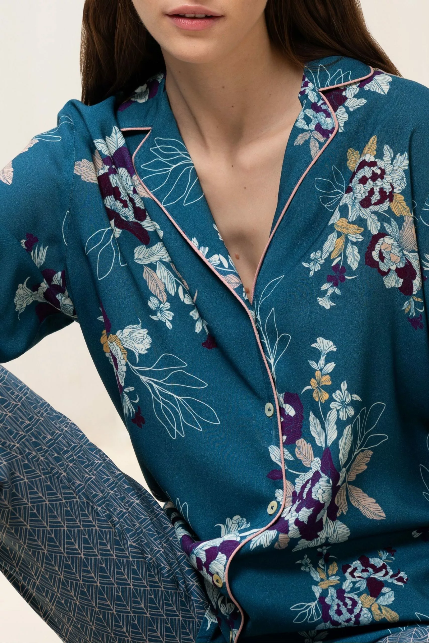 Our Lounge-Me Natural collection is modern, relaxed and incredibly soft. We have designed these Pyjamas with premium viscose in a stylish boyfriend shape for your ultimate comfort. Sophisticated boyfriend shape. Featuring contract piping and side seam pockets on trousers.