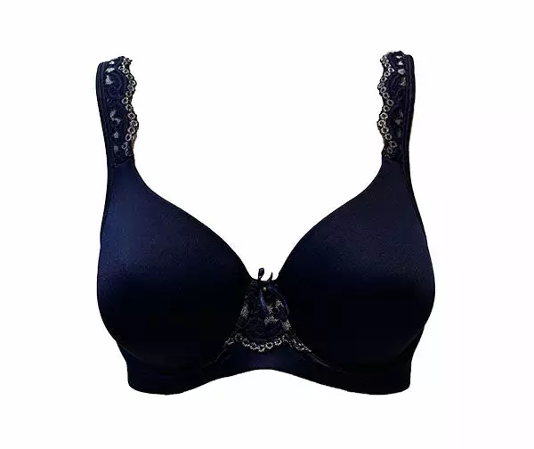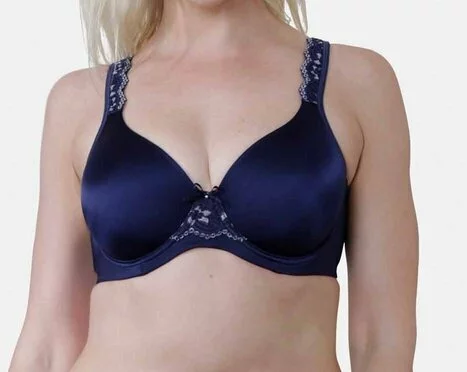 A smooth and comfortable underwire bra in a soft shiny fabric. Features elegant lace at the centre front and side panels. The cups are lightly padded and moulded to create a sleek line and smooth silhouette.