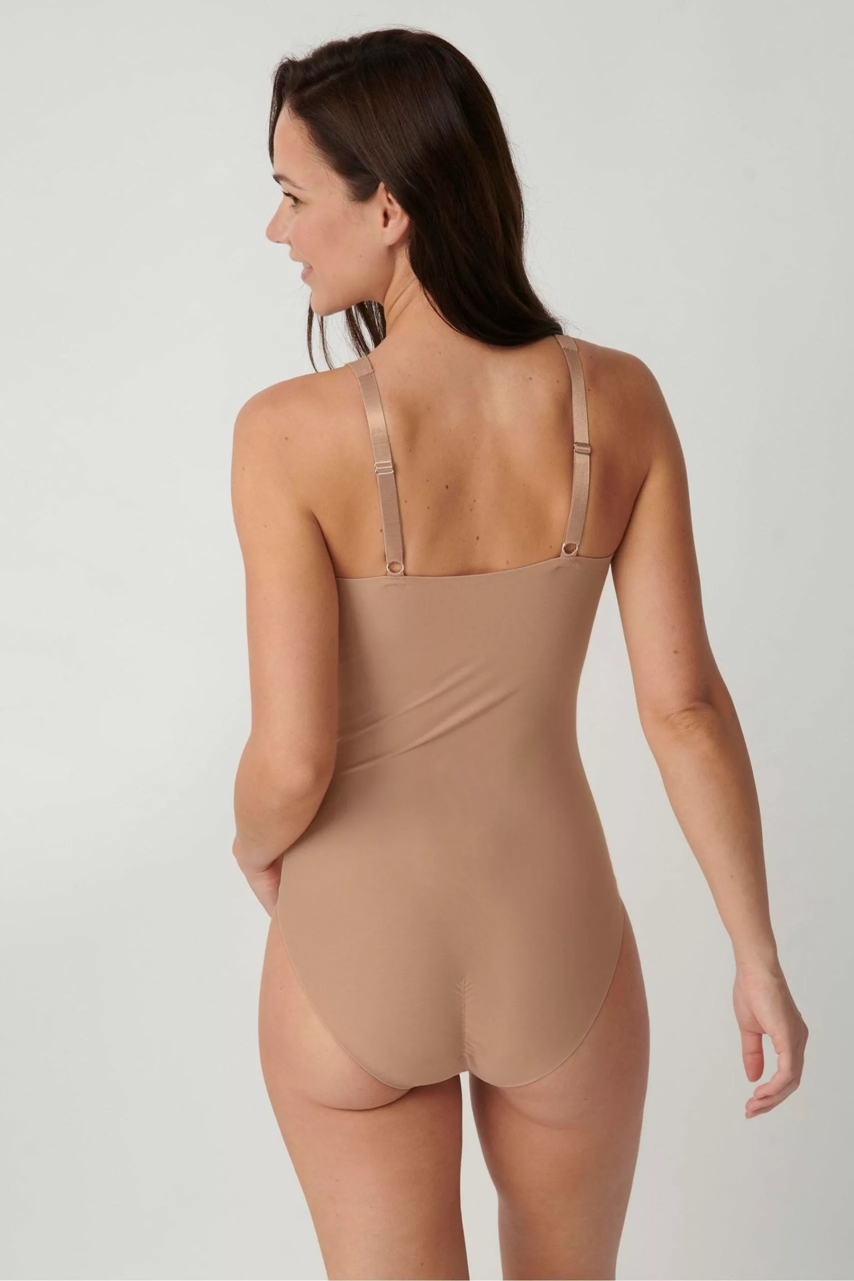 The True Shape Sensation range is truly innovative, thanks to its expert technology that offers unparalleled comfort and a smoothing effect that retains the natural bust shape. The Bodysuit from the range, featuring a non-padded minimiser that optically reduces the bust by a whole cup size. Its nearly seamless workmanship and clean finishes ensure no VPL and a feeling of complete comfort. Hook-and-eye gusset. Silver crown branding at centre bust.