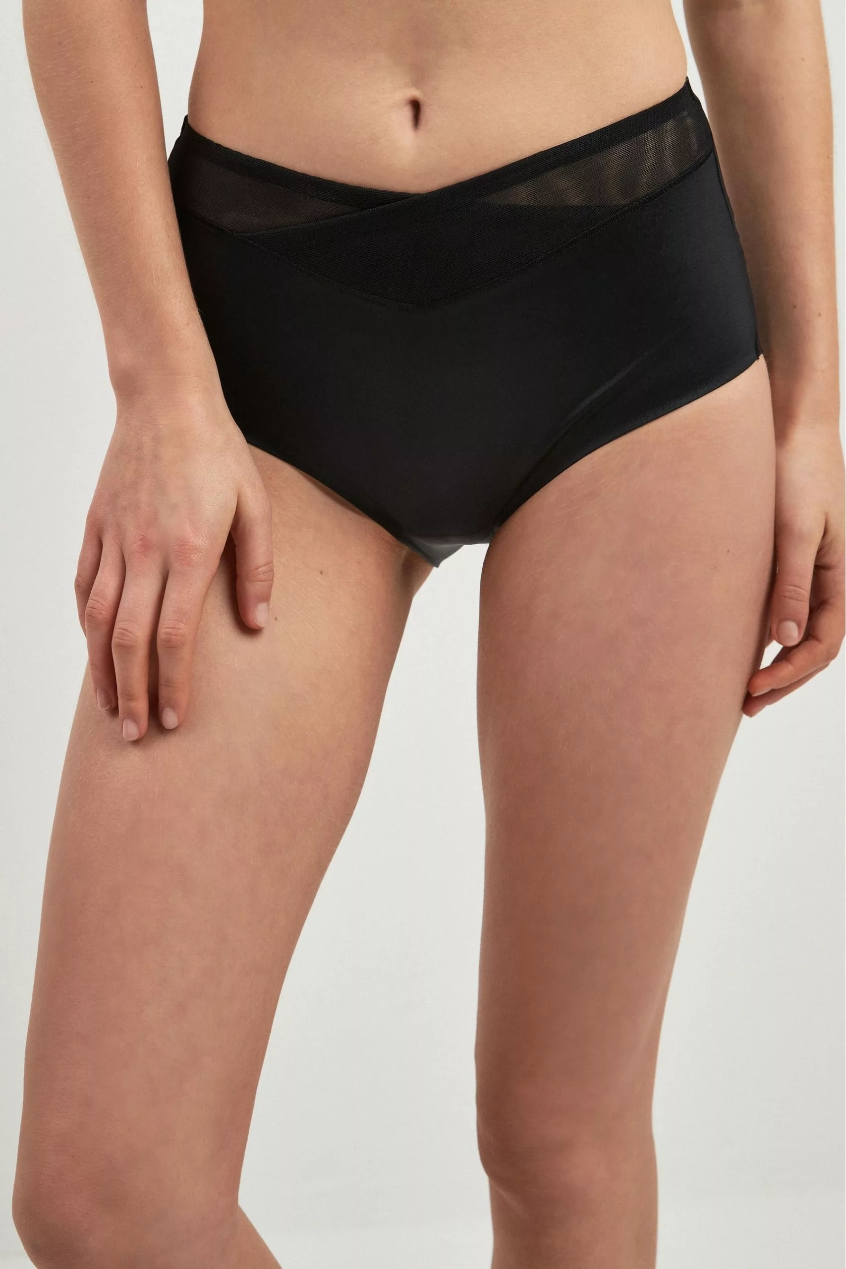 Tight, pleasant material with shaping effect creates a defined silhouette at the tummy, the bottom, and the hips